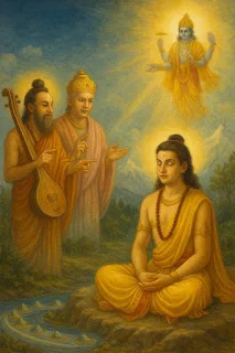 | Divine wisdom meets royal duty—Priyavrata's journey begins. |