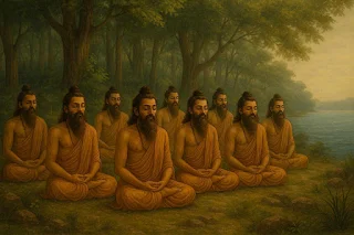 | King Priyavrata in deep reflection, guided by the wisdom of sages and the will of the divine. |